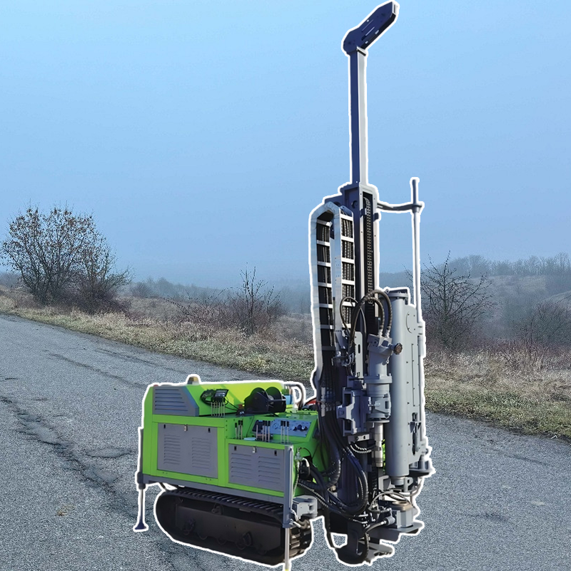Mobility innovation comes in the form of the remote‑controlled rubber track system. The tracks are driven by independent hydraulic motors, providing stepless speed variation and true zero‑radius turning. The operator can manoeuvre the rig with a handheld remote from a safe distance, navigating obstacles and positioning the drill with pinpoint accuracy. This capability is invaluable on unstable ground, in environmentally sensitive areas, or wherever operator safety is paramount.